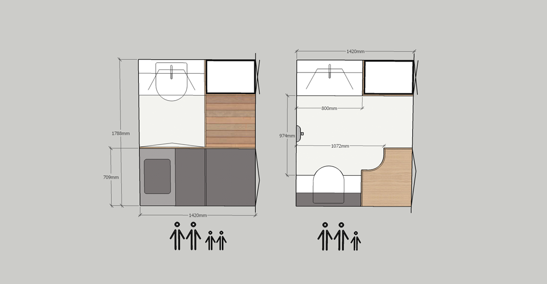 Slide-out S is het kleinste volume en bevat alles wat de grotere volumes ook bieden (met uitzondering van extra slaapplaatsen). De basis bestaat uit een hoge, ruime koelkast, een hoge leg- en hangkast en een compacte badkamer met cassettetoilet en opklapbare wastafel.